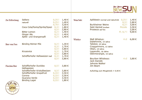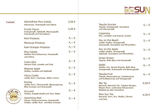Speise und Getränkekarte